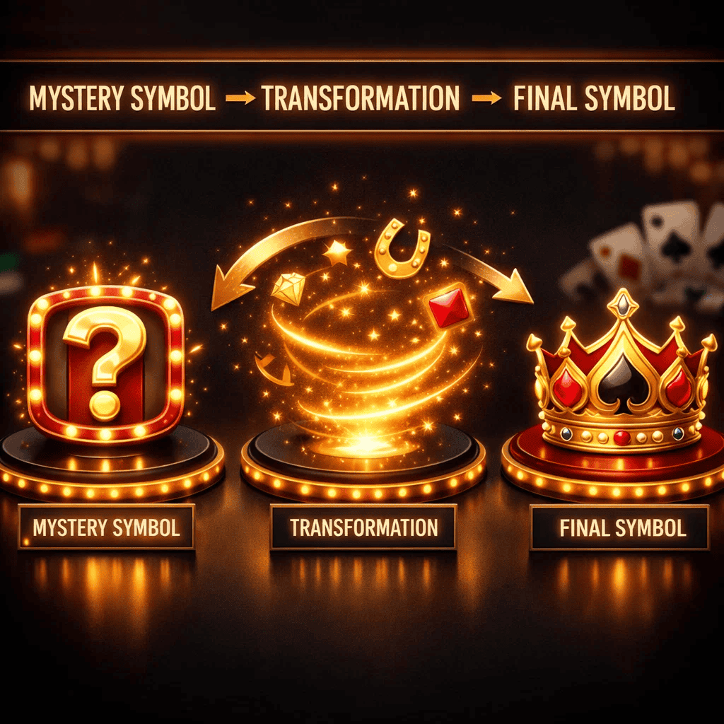 Mystery symbols are special icons that appear as unknown placeholders during a spin. Instead of showing their final value immediately, they transform into regular symbols after the reels stop.