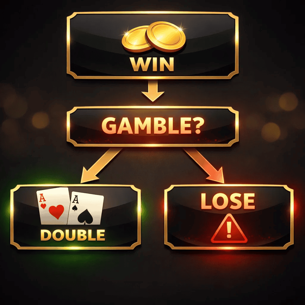 After a win, the game presents a choice, often involving guessing a color, symbol, or card value. If the guess is correct, the win is doubled. If it is incorrect, the entire win is lost.